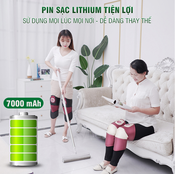 Pin sạc được thiết kế là loại pin lithium chất lượng cao, dòng điện tới 2A. Dung lượng pin cực khủng lên đến 7000 mAh cho thời gian sử dụng dài hơn (tùy chế độ, rung mạnh nhẹ, chỉ dùng nhiệt, chỉ rung, hoặc vừa rung vừa nhiệt). Ngoài ra với thiết kế pin rời điện áp sạc ra 5V-2A, pin có thể sạc sử dụng làm sạc dự phòng cho điện thoại hoặc các thiết bị điện tử khác. Với tính năng này vô cùng tiện lợi.
