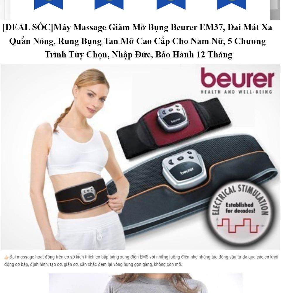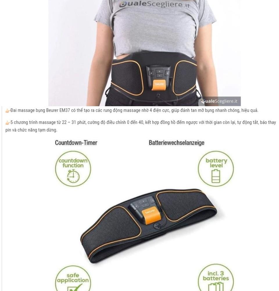 Giới thiệu Máy Massage Giảm Mỡ Bụng Beurer EM37, Đai Mát Xa Quấn Nóng, Rung Bụng Tan Mỡ, 5 Chương Trình Tùy Chọn, Nhập Đức