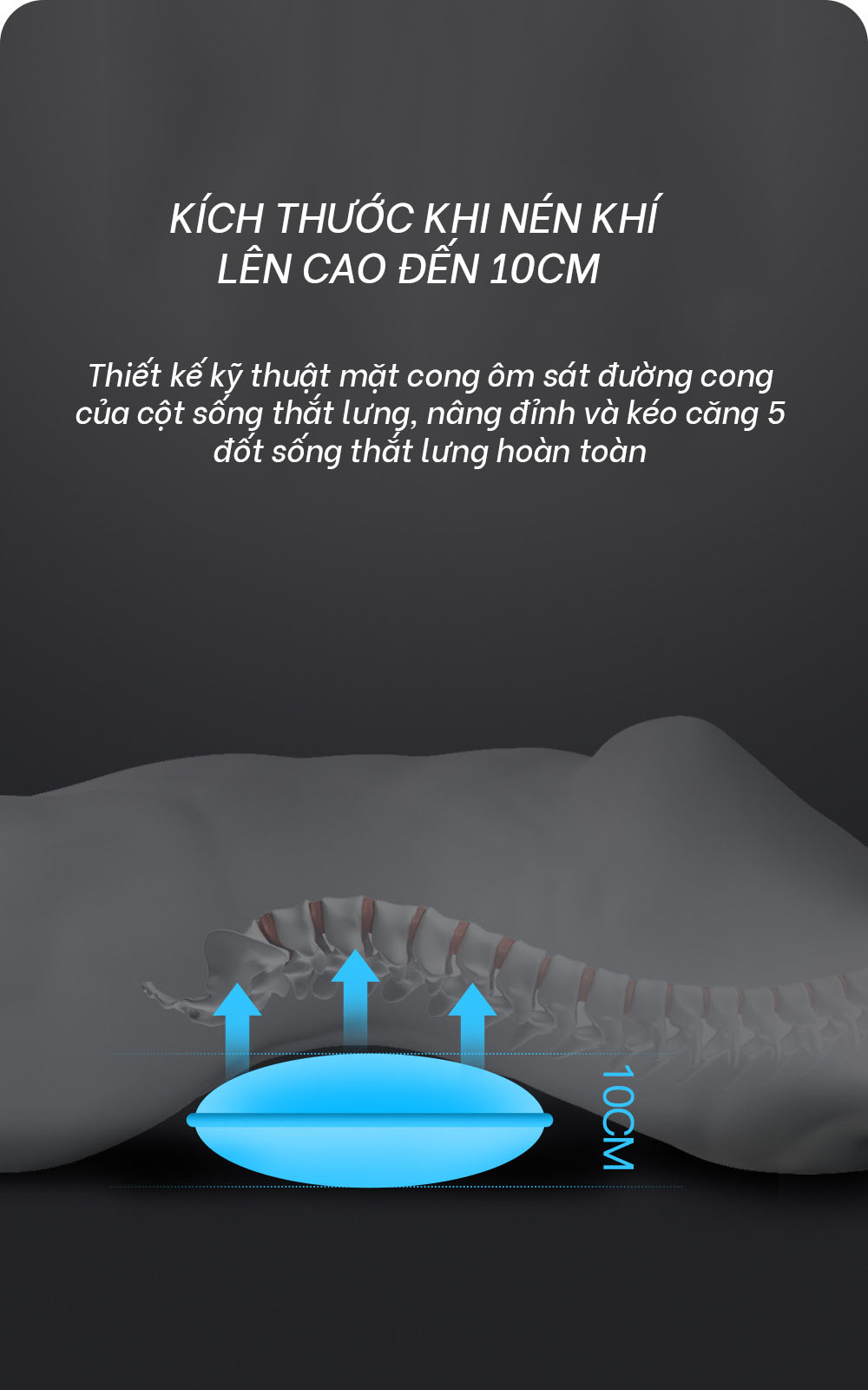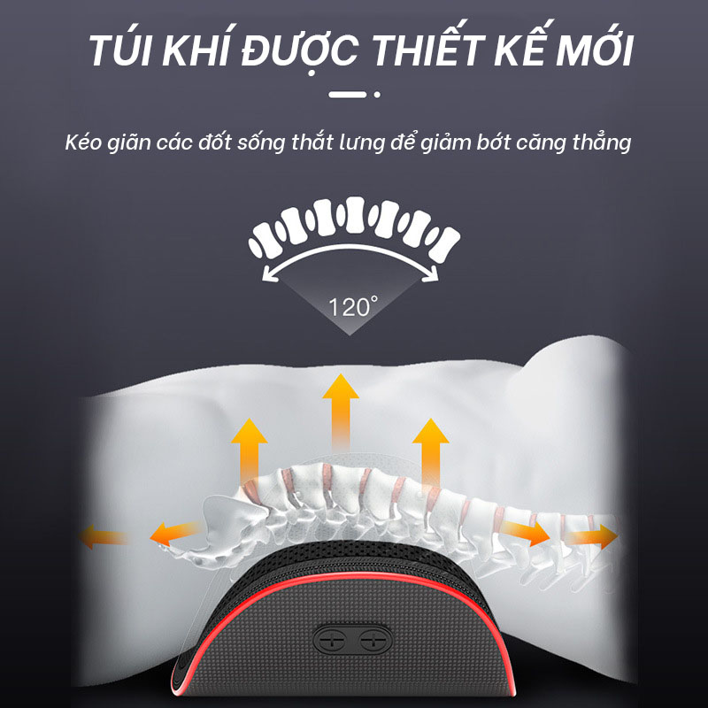 Thiết kế mới Túi khí thắt lưng kéo. Độ cong cột sống thắt lưng bình thường của cơ thể con người là 120 °. Máy mát xa cột sống thắt lưng sử dụng túi khí để đẩy lên và xuống để tạo ra lực kéo động hồ quang hai chiều, kéo các đốt sống thắt lưng bị ép trở lại độ cong sinh lý khỏe mạnh để đạt được mục đích làm dịu và đặt lại.