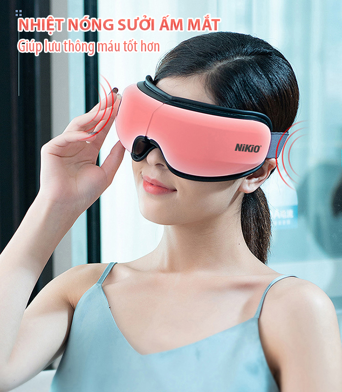 Máy Massage mắt Nikio NK-116 tích hợp thêm nhiệt để sưởi ấm mắt. Nhiệt nóng sẽ giúp cải thiện các triệu chứng nhức mỏi và làm tăng tốc độ lưu thông máu ở vùng mắt. Nếu sử dụng đều đặn 15 phút mỗi ngày, các dấu hiệu lão hóa sớm như chân chim, nếp nhăn, bọng mắt cũng được đẩy lùi.