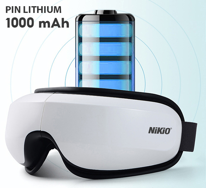 Máy Massage mắt Nikio NK-116 vận hành bằng pin, rất tiện ích khi cần mang đi xa. Pin Lithium cao cấp thế hệ mới có tuổi thọ cao, chống chai phù cực tốt. Dung lượng pin 1000 mAh, sử dụng được liên tục trong khoảng 4 giờ.