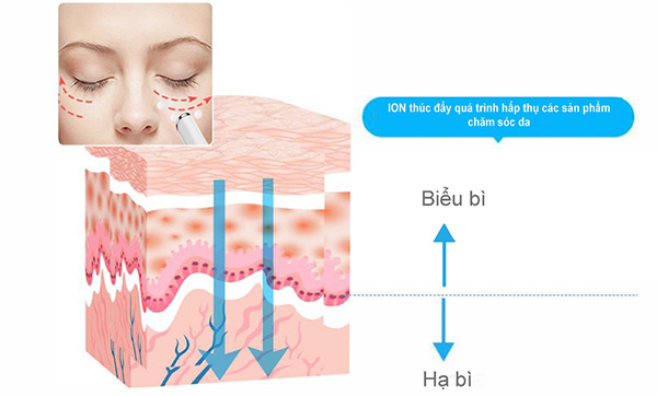 Bổ sung ion: Chế độ này cùng với nhiệt độ và ánh sáng đỏ giúp da mềm mịn. Massage siêu âm kết hợp giúp tăng hấp thụ của kem dưỡng chất, đồng thời cải thiện và giảm tế bào mỡ.