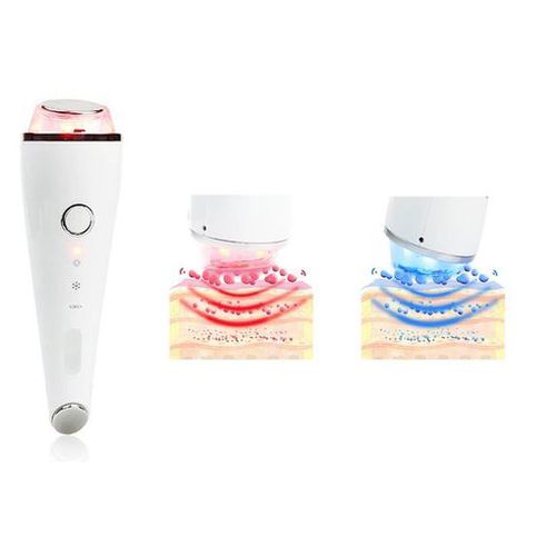 Sản phẩm là sự kết hợp hoàn hảo: Massage mặt nóng lạnh kết ánh sáng sinh học nóng lạnh và Massage trị thâm quần mắt.