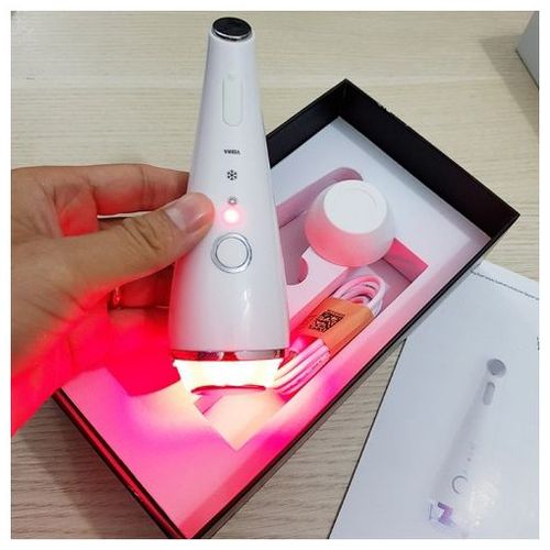 Công dụng: Massage mặt nóng lạnh kết hợp ánh sáng sinh học (đỏ, xanh). Máy Massage trị thâm quần mắt kết hợp làm lạnh.