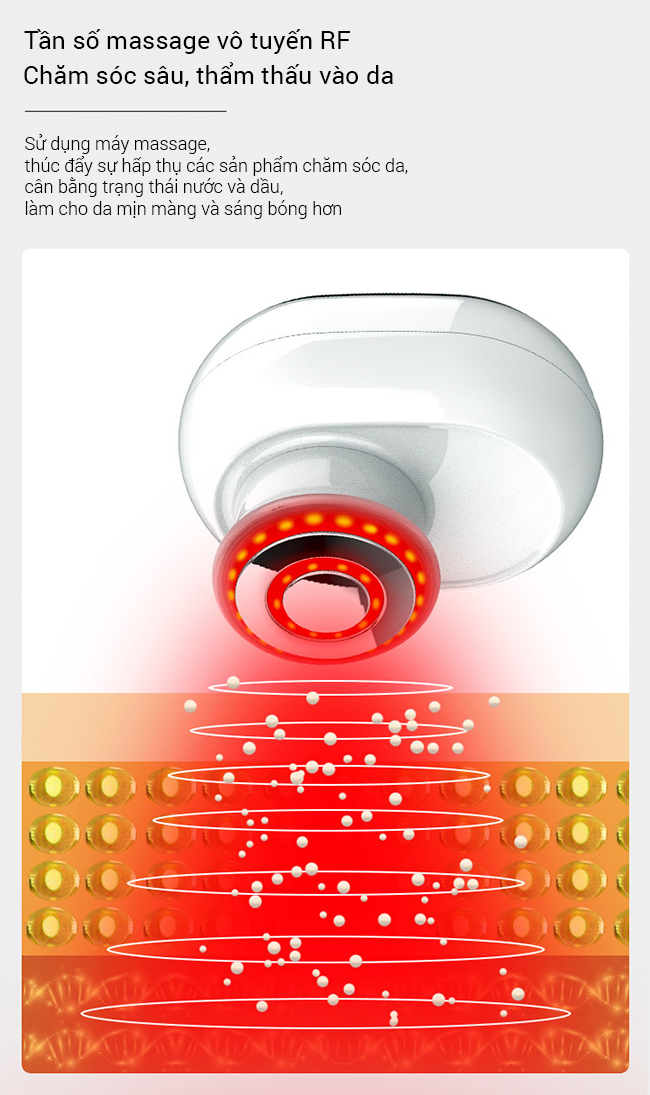 + Công nghệ RF làm ấm da từ sâu bên trong, giúp giảm lão hóa da, nếp nhăn và các vấn đề khác.