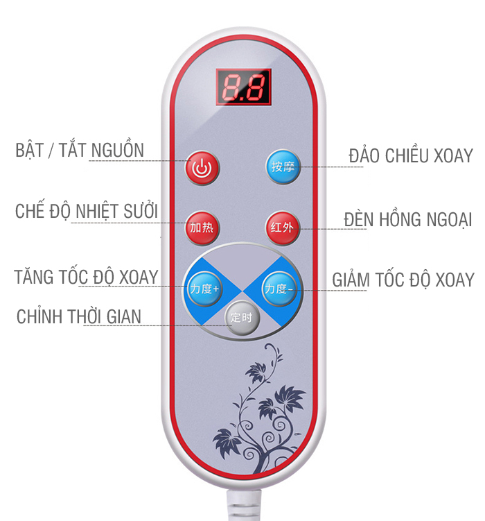 Đảo chiều Massage xoay: ấn nút xanh dương đầu tiên (bìa phải), E1 là thuận chiều kim đồng hồ, E2 là nghịch chiều kim đồng hồ, E0 tắt.