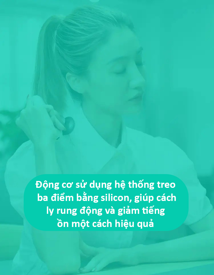 Động cơ sử dụng công nghệ treo 3 điểm bằng silicon giúp cách ly rung động và giảm tiếng ồn 1 cách hiệu quả