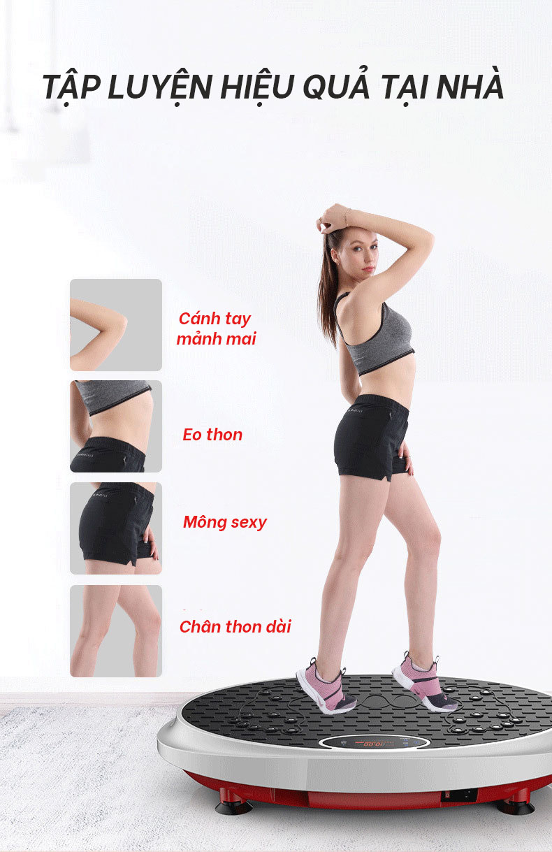 Chỉ cần ấn nút là máy tạo các độ rung hỗ trợ chuyên sâu các vùng riêng biệt trên cơ thể giúp tăng cường sức mạnh cho xương, làm săn chắc vai, bắp tay, cơ bụng, hông, eo, mông, đùi … nhanh chóng mất đi lượng mỡ thừa một cách hiệu quả, an toàn nhất.