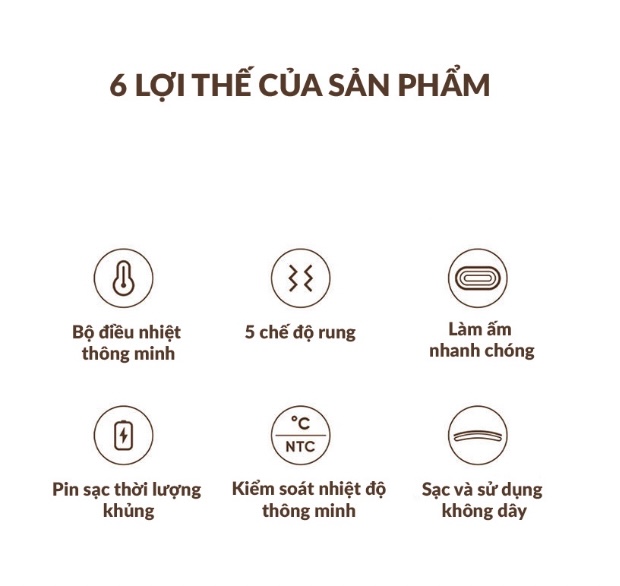 - Đai có 4 chế độ làm ấm, nhiệt độ tối đa 65 độ C, giúp giữ ấm bụng và hết đau bụng vào những ngày khó ở của chị em.