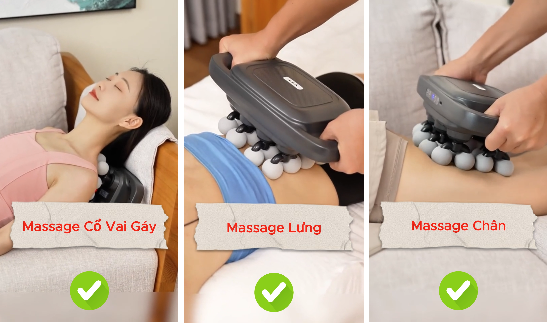 - Máy có 9 chế độ với 30 mức độ điều chỉnh thích hợp theo cơ của từng bộ phận khác nhau.