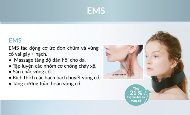 Kích thích EMS từ Medi Lift Neck EPN-10BB tác động chính đến các nhóm cơ vùng cổ trong đó có cơ ức đòn chũm - là một trong những cơ lớn nhất vùng cổ, đóng vai trò chính trong các cử động xoay, gập, duỗi vùng cổ.