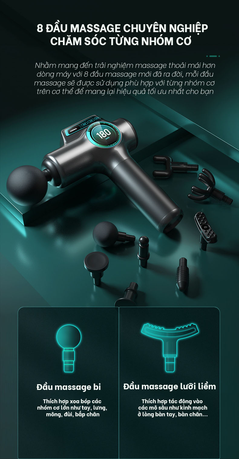 Máy masasge giúp Kích thích các thụ thể cục bộ của cơ để giảm đau và giúp thư giãn mà không gây đau đớn; không gây viêm.