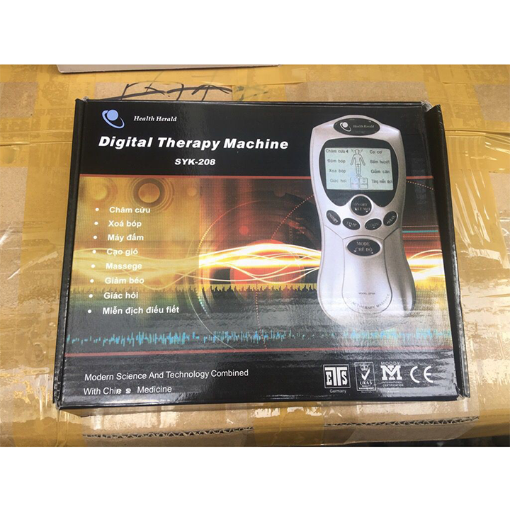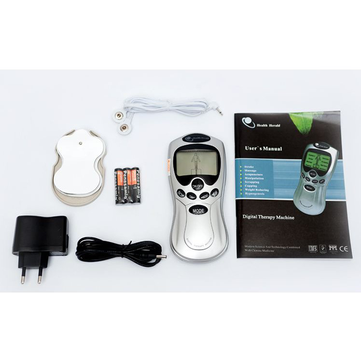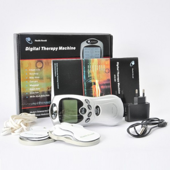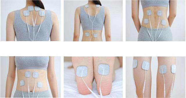- Bộ sản phẩm bao gồm 1 máy, 4 miếng dán gel điện cực và 1 dây nối điện cực.