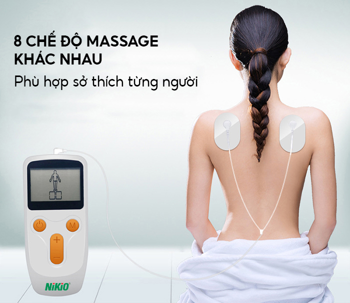 Máy Massage xung điện 2 kênh 8 miếng dán Nikio NK-101 hoạt động với 8 chế độ khác nhau: Châm cứu, co cơ, đấm bóp, bấm huyệt, xoa bóp, giác hơi, tăng miễn dị Người dùng thoải mái lựa chọn những bài matxa phù hợp với tình trạng sức khỏe.