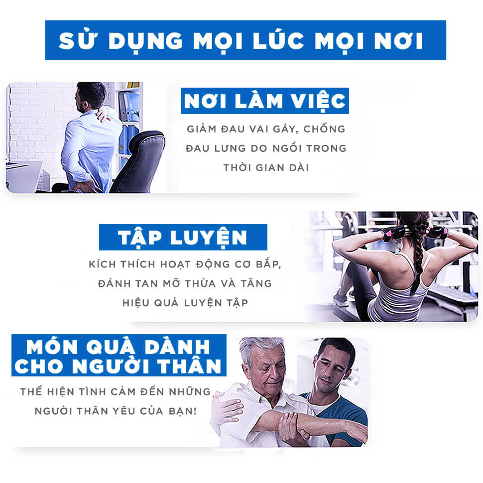 Máy mát xa cổ vai gáy của Nhật Bản được thiết kế để làm giảm sự căng thẳng và đau nhức ở bất kỳ vị trí nào trên cơ thể, đặc biệt là vùng cổ, vai và gáy. Nó tạo ra nhiều luồng sóng rung liên tục tác động chính xác đến các điểm quan trọng giúp giảm đau cơ, căng cơ và giảm căng thẳng sau một ngày làm việc căng thẳng.