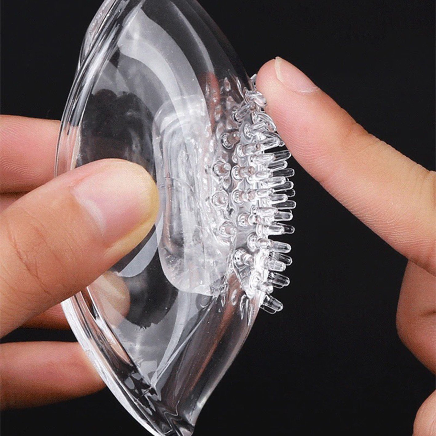 - Đặt phần silicone lên ngực và ấn nhẹ để bám chắc vào ngực, lưu ý phần gai silicone nên tiếp xúc với núm vú để kích thích hiệu quả hơn.