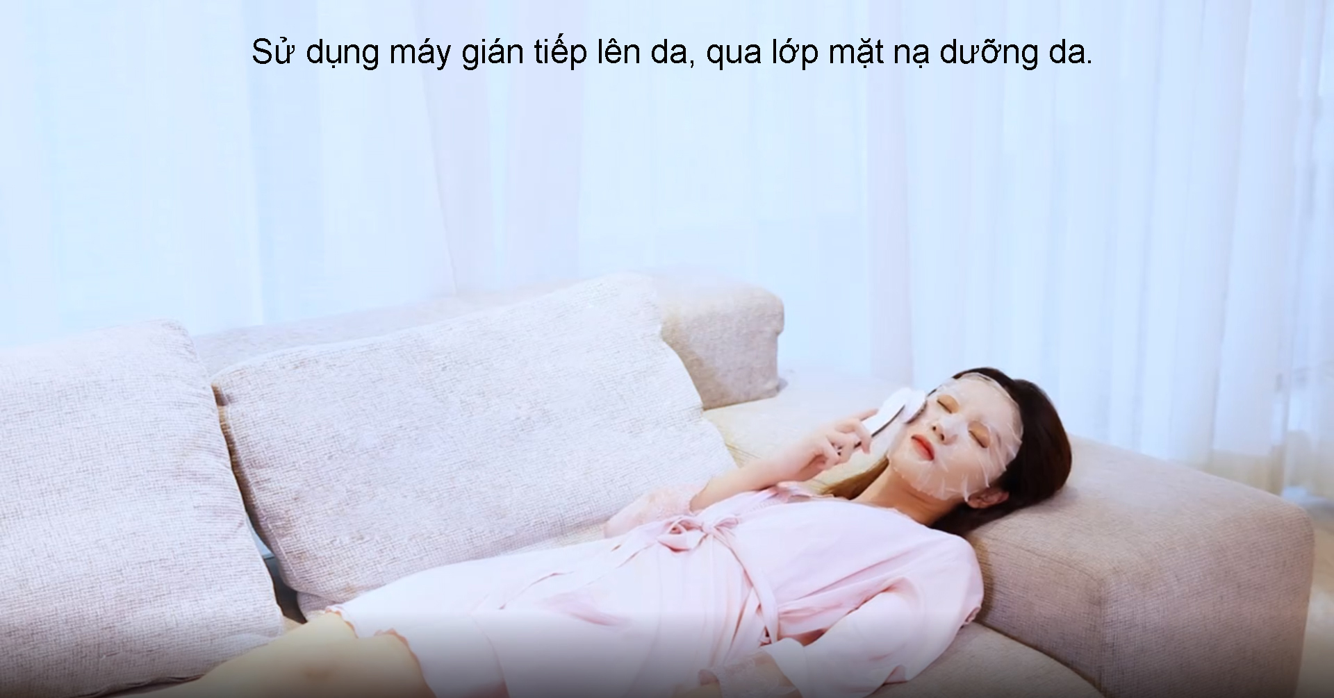 Có thể sử dụng máy trực tiếp lên da hoặc gián tiếp lên da qua lớp mặt nạ dưỡng da.