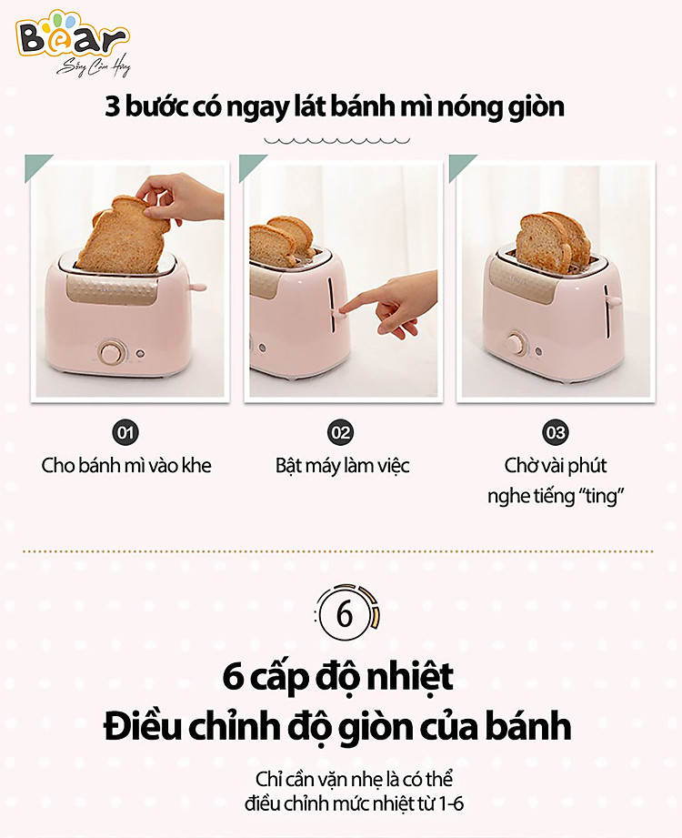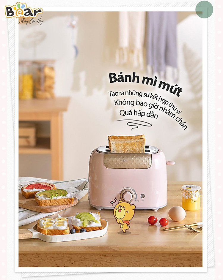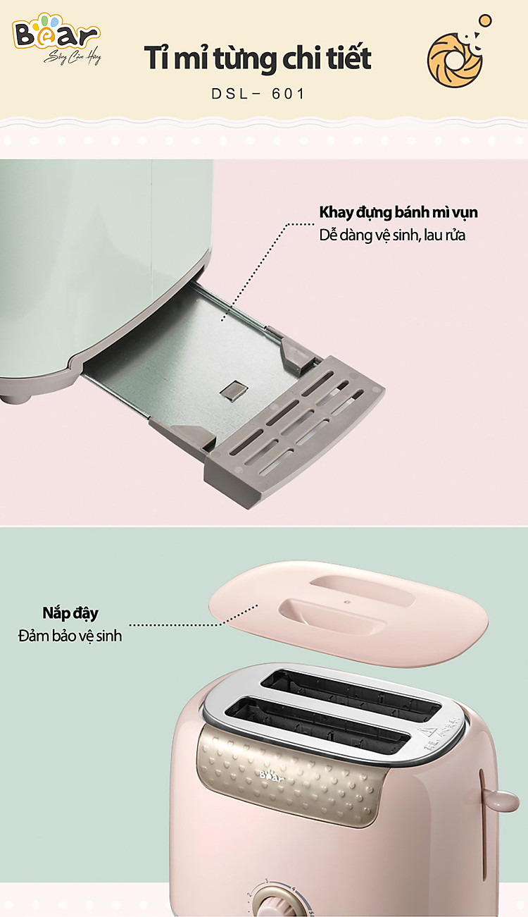 Bear cũng luôn chăm chút cho từng sản phẩm với các chi tiết tỉ mỉ như khay hứng vụn bánh có thể tháo dời giúp vệ sinh dễ dàng và nắp bảo quản chống bụi khi không sử dụng.