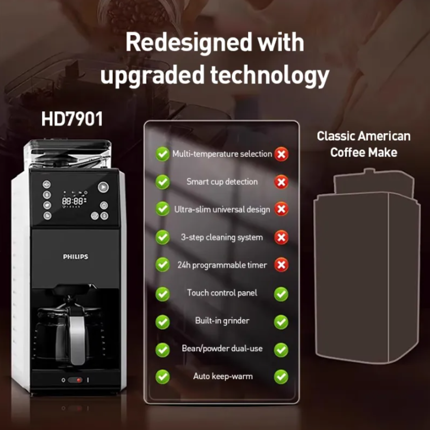 Là một tín đồ cà phê, bạn sẽ yêu thích sự tươi ngon của hạt cà phê trong mỗi tách. Philips HD7901/10 cho phép bạn thư giãn khi pha, thưởng thức một cách ngon miệng khi nhâm nhi tách cà phê yêu thích.