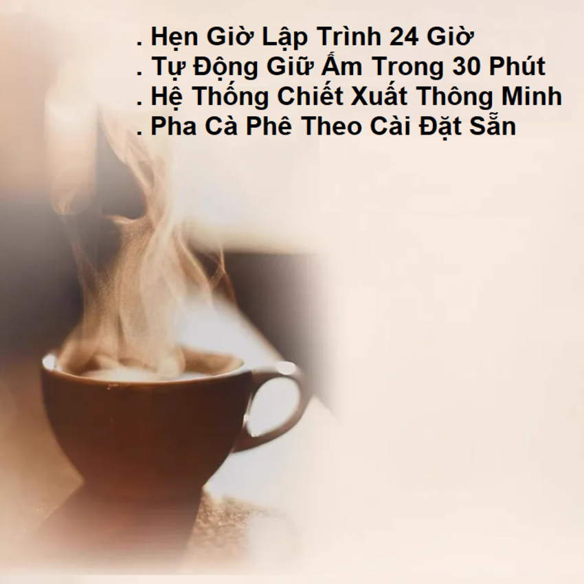 - Màn hình LED hiển thị chế độ pha cà phê có hẹn giờ. Lập trình thời gian để máy pha cà phê tự động khởi động, giúp bạn thức dậy với hương thơm cà phê tươi ngon.