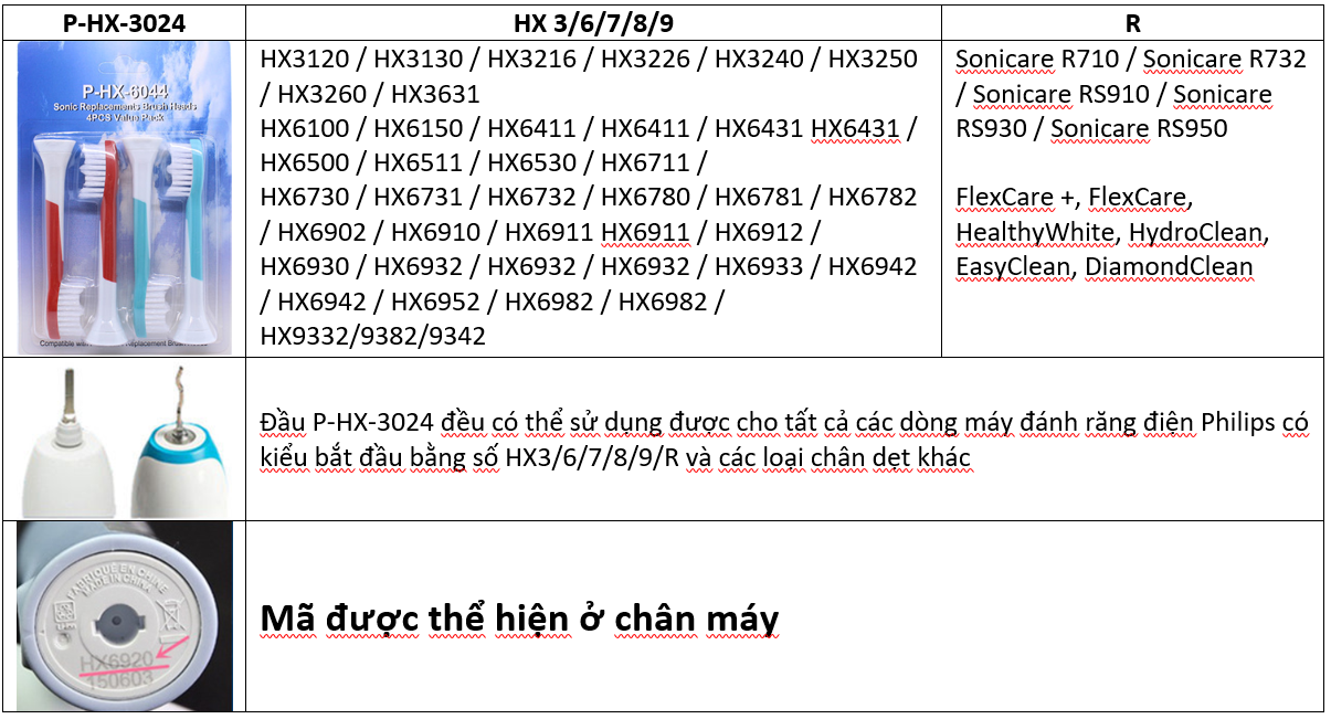 Philips có nhiều dòng máy khác nhau như FlexCare, EasyClean, HX3/HX6/HX9… Đầu HX-6044 này phù hợp cho tất cả các dòng máy đánh răng điện Philips có kiểu bắt đầu bằng số 6,7/8/9/R và các loại khác chân dẹt khác. Các bạn nên xem kỹ dòng máy của mình trước khi mua hàng.