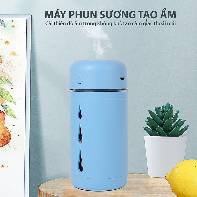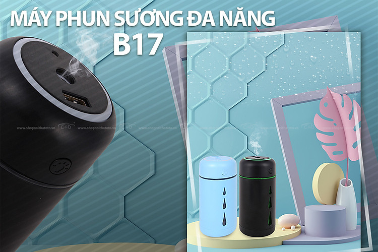 Máy phun sương đa năng B17 màu lam có khả năng cải thiện độ ẩm trong không khí giúp hạn chế các dấu hiệu thiếu độ ẩm như da khô, hắt hơi hay đau họng, đồng thời thiết kế cổng sạc USB giúp tiện lợi khi di chuyển, dễ dàng mang đi du lịch.