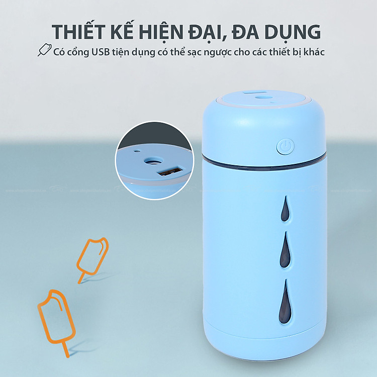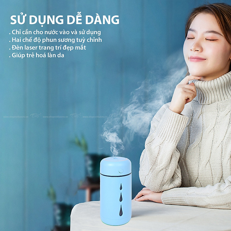 Hướng dẫn sử dụng: Lắp ráp các phần theo hướng dẫn trên bao bì, cho nước tinh khiết vào bên trong, kết nối với nguồn USB và nhất nút khởi động.