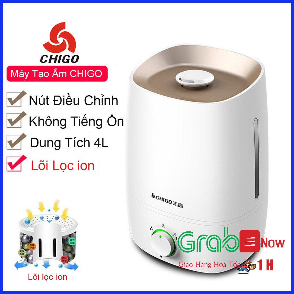 * SẢN PHẨM : Máy Phun Sương Điều Hoà Độ Ẩm Không Khí Chigo - Thương Hiệu : CHIGO - Dung tích 4 lít - Phiên bản : Cơ học / LED Cảm Ứng - Chất liệu : Nhựa ABS - Kích thước : 30 x 20 x 17cm - Công suất : 23W - Nguồn điện 220v - 50Hz - Bộ sản phẩm 1 Thân Máy + Lõi lọc ion + giấy hướng dẫn + dây nguồn
