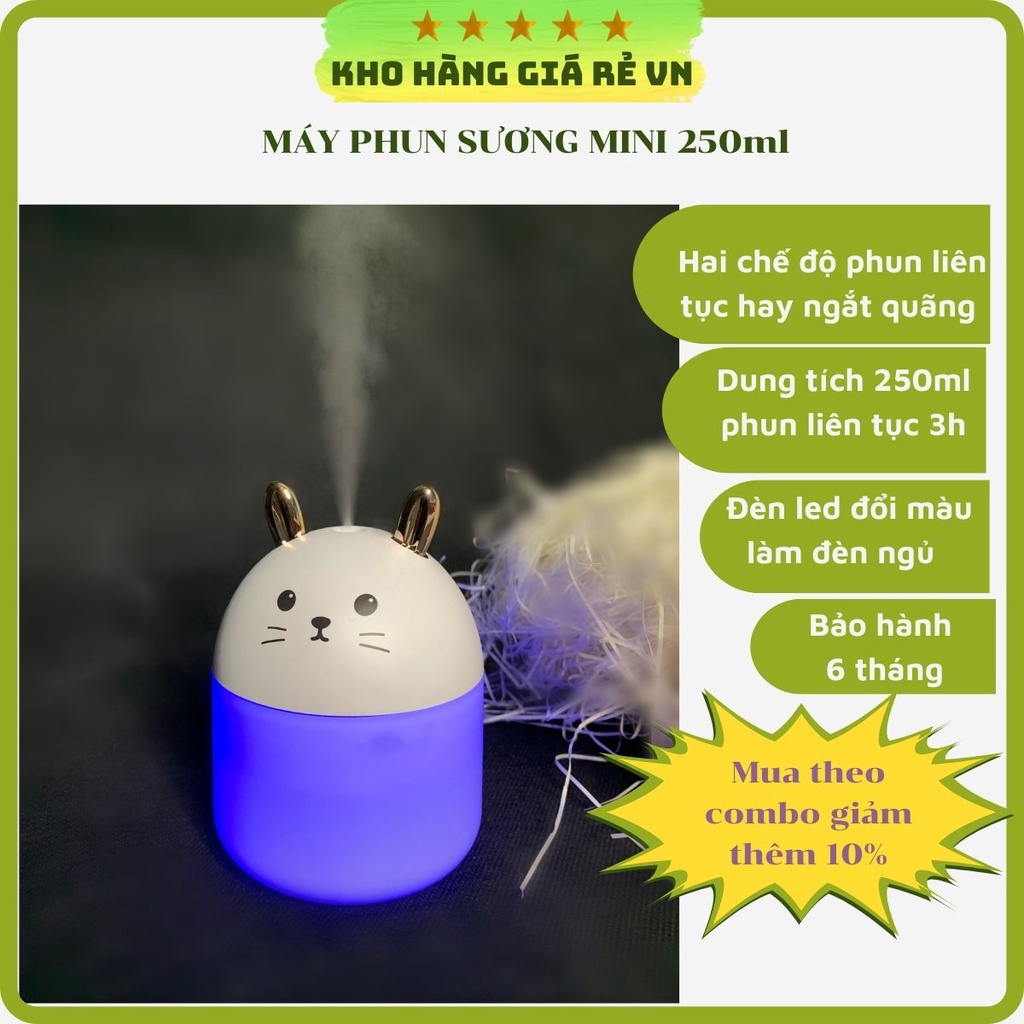 Máy phun sương mini hình con thỏ máy xông tinh dầu tạo ẩm dung tích 250ml kho hàng giá rẻ VN