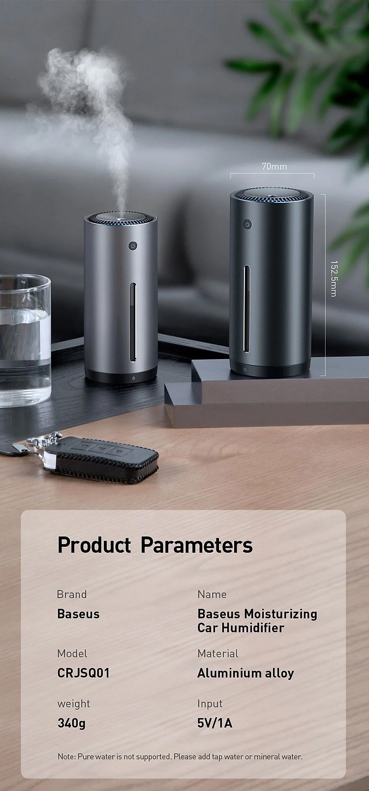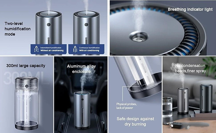 Máy Phun Sương Tạo Ẩm Baseus Moisturizing Car Humidifier là một thiết bị nhỏ gọn và tiện ích, được thiết kế đặc biệt để cải thiện chất lượng không khí trong xe ô tô của bạn. Dưới đây là một số tính năng nổi bật của sản phẩm: