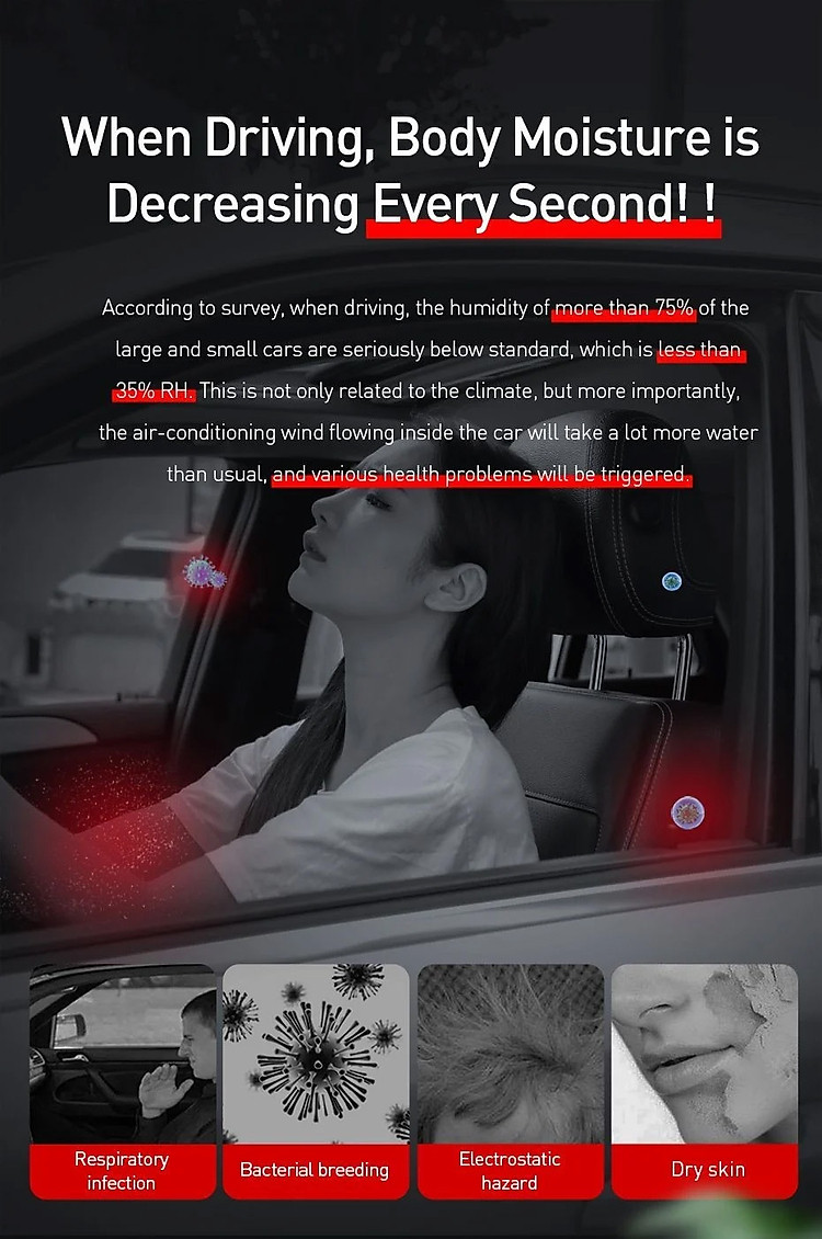 Tạo Ẩm Hiệu Quả: Máy phun sương giúp tăng độ ẩm trong không gian xe, giảm khô da, mệt mỏi và khó chịu.