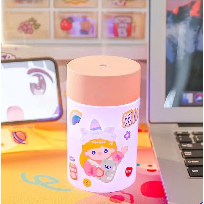 Máy phun sương tạo ẩm mini, Máy tạo độ ẩm không khí có đèn LED Siêu cute MLS