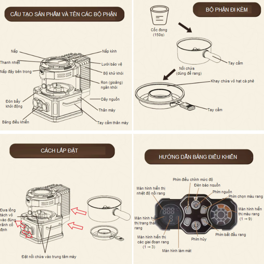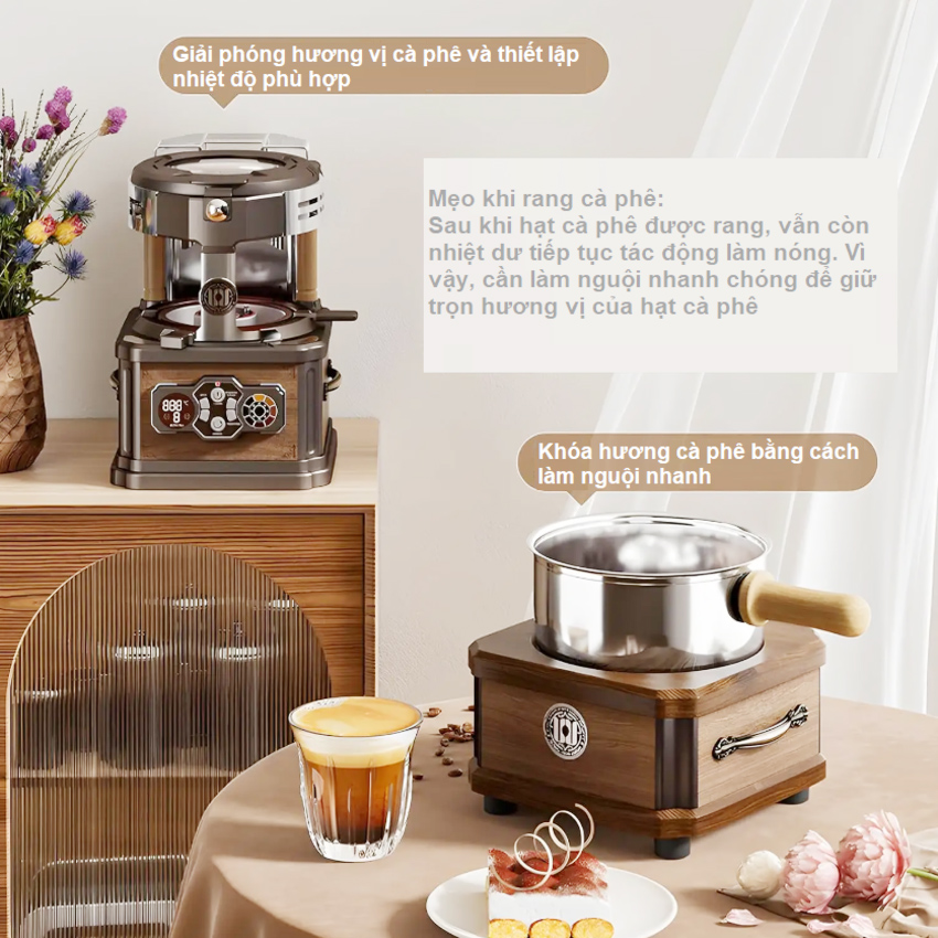 - Máy rang cà phê không khí cỡ nhỏ, công suất rang là từ 120-200g - Rất thích hợp cho cà phê hàng ngày của bạn, tiết kiệm thời gian và tiền bạc, đảm bảo hương vị tươi ngon cà phê