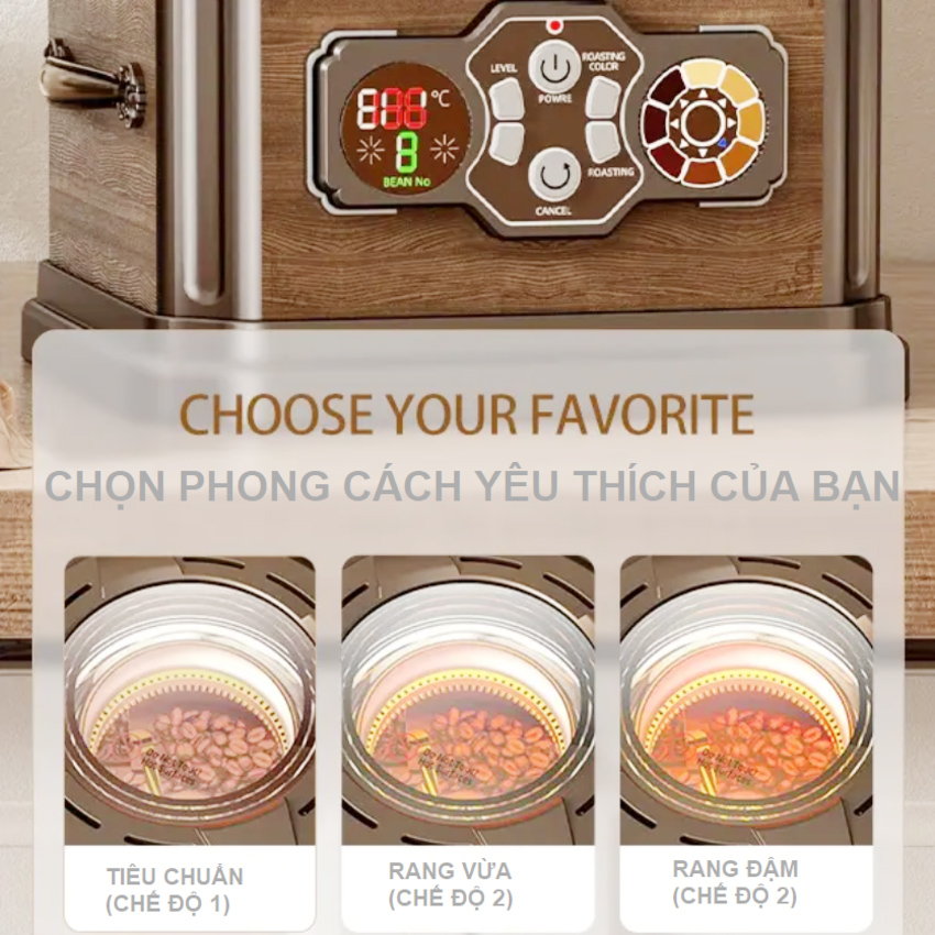 - 3 chế độ rang theo sở thích của bạn
