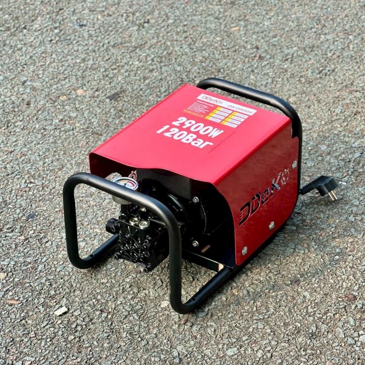 Máy xịt rửa áp lực cao DEKO DK-2900S là dòng máy rửa xe mini công suất lớn nhưng thiết kế cực kỳ nhỏ gọn, phù hợp cho nhu cầu sử dụng tại gia đình hoặc các thợ vệ sinh điện lạnh chuyên nghiệp. Dưới đây là thông số kỹ thuật và đặc điểm chi tiết của model này: Thông số kỹ thuật DEKO DK-2900S Thuộc tính Chi tiết Công suất: 2900W (2.9 kW) Điện áp: 220V / 50Hz (Điện dân dụng) Áp lực nước tối đa: 120 bar Lưu lượng nước: 10 Lít/phút Động cơ: Mô tơ cảm ứng từ, lõi đồng 100% Trọng lượng: 10.00 kg (Thân máy gọn nhẹ) Chiều dài ống: Dây hút 2m, dây áp lực cao 15m Đặc điểm nổi bật Thiết kế tối ưu: Với trọng lượng chỉ 10kg, máy rất linh động, dễ dàng mang vác bằng một tay hoặc mang theo trên xe máy để đi làm công trình, vệ sinh điều hòa. Động cơ cảm ứng từ: Giúp máy vận hành êm ái hơn, ít tiếng ồn và có tuổi thọ cao hơn hẳn so với các dòng máy sử dụng motor chổi than thông thường. Máy có khả năng tự hút nước từ xô chậu. Áp lực ổn định: Mặc dù áp lực tối đa là 120 bar (thấp hơn dòng 3100S), nhưng đây là mức áp lực lý tưởng để rửa xe sạch mà không lo làm bong tróc sơn hoặc hư hỏng các chi tiết nhựa mỏng trên xe. Tiết kiệm nước: Lưu lượng 10L/phút giúp tiết kiệm nước hơn so với các dòng máy rửa xe công nghiệp nhưng vẫn đảm bảo độ phủ và làm sạch nhanh. Hệ thống an toàn: Tự động ngắt máy khi nhả cò súng, giúp bảo vệ động cơ và tiết kiệm điện. Ứng dụng thực tế Rửa xe máy, ô tô tại gia đình. Vệ sinh máy lạnh, điều hòa, máy giặt (độ mạnh vừa phải, an toàn cho thiết bị). Xịt rửa sân vườn, ban công, tưới cây cảnh. Vệ sinh các vật dụng gia đình, thảm lót sàn. Sản phẩm thường đi kèm đầy đủ bộ phụ kiện: Súng phun, bình tạo bọt tuyết, dây cao áp 15m, dây hút và đầu lọc rác.