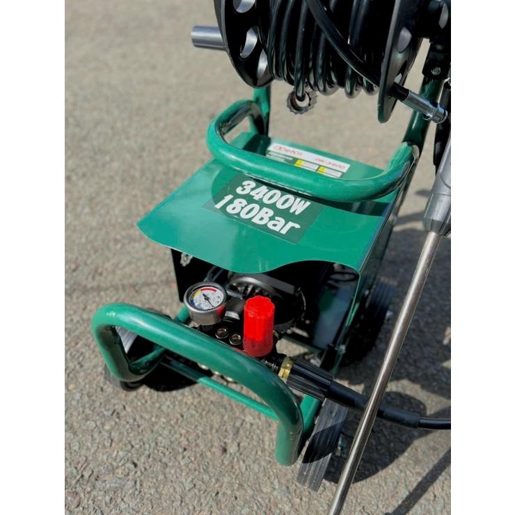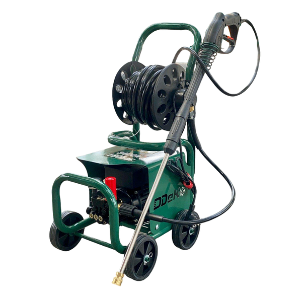 Máy xịt rửa áp lực cao DEKO DK-3400 là mẫu máy rửa xe gia đình/bán chuyên nghiệp với khả năng điều chỉnh áp suất, cung cấp hiệu suất làm sạch mạnh mẽ cho nhiều nhu cầu sử dụng khác nhau. Dưới đây là thông số kỹ thuật và đặc điểm chi tiết của model này: Thông số kỹ thuật DEKO DK-3400 Thuộc tính Chi tiết Công suất: 3400W (3.4 kW) Áp lực nước tối đa: 180 bar (khoảng 2600 PSI) Lưu lượng nước: 8L/phút (Một số nguồn ghi 12L/phút, 8L/phút là phổ biến hơn) Điện áp: 220V / 50Hz (Điện dân dụng 1 pha) Tính năng: Có chỉnh áp Động cơ: Mô tơ cảm ứng từ (không chổi than), lõi đồng 100% Trọng lượng: Khoảng 16 kg Chiều dài ống: Dây hút 2m, dây áp lực cao 15m Đặc điểm nổi bật và ứng dụng Công suất mạnh mẽ: Với công suất 3400W và áp lực 180 bar, máy có khả năng loại bỏ các vết bẩn cứng đầu trên ô tô, xe máy, sân vườn và các bề mặt khác một cách dễ dàng. Có chức năng chỉnh áp: Tính năng điều chỉnh áp suất cho phép người dùng thay đổi lực phun linh hoạt, phù hợp với từng bề mặt cần vệ sinh, từ xịt rửa nhẹ nhàng đến làm sạch công nghiệp. Thiết kế tiện lợi: Máy thường đi kèm với rulo cuốn dây áp lực 15m và bánh xe, giúp việc di chuyển và bảo quản dây gọn gàng, tiện lợi hơn. Độ bền cao: Sử dụng motor dây đồng 100% và piston gốm (sứ) giúp máy hoạt động bền bỉ, tuổi thọ cao và chạy êm, ít gây tiếng ồn. An toàn: Máy được trang bị tính năng tự ngắt khi nhả cò súng, đảm bảo an toàn cho người sử dụng và bảo vệ động cơ.