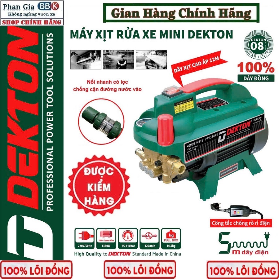 Máy rửa xe áp lực Dekton DK-RX3001, có chỉnh áp, dây nguồn CB chống giật