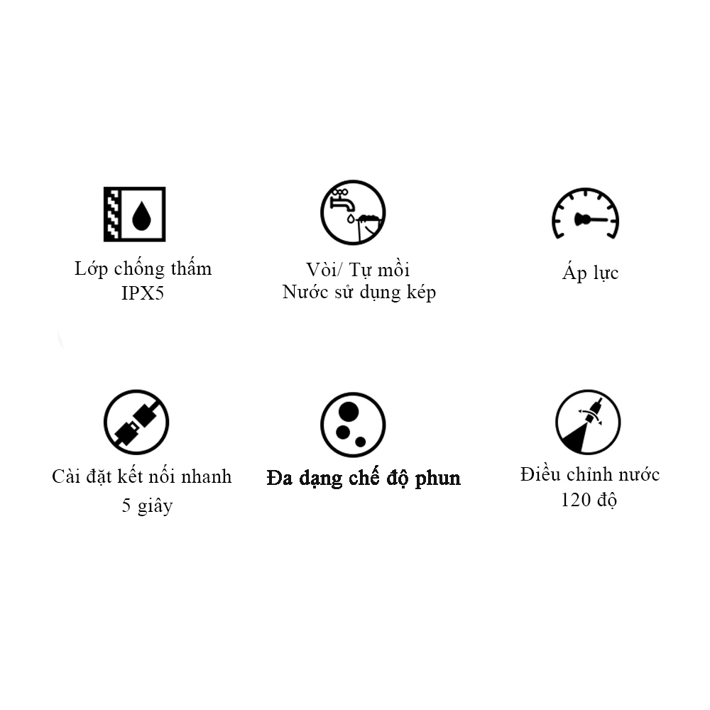 Nước Có Thể Điều Chỉnh Góc Độ: 0-120 °