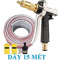 Bộ dây vòi xịt nước rửa xe, tưới cây đa năng, tăng áp 3 lần, loại 15m 206701-2 đầu đồng, cút đồng