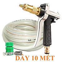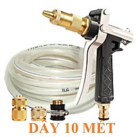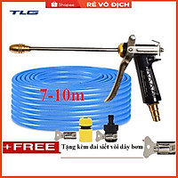Bộ dây vòi xịt bơm nước tưới rửa , tăng áp 3 lần, loại 7m, 10m 206701-2 đầu đồng,cút + đai