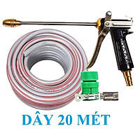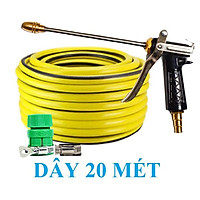 Vòi Xịt️Evoucher Bộ dây vòi xịt nước rửa xe, tưới cây , tăng áp 3 lần, loại 20m 206236 đầu đồng, đai, nối vòi vàng