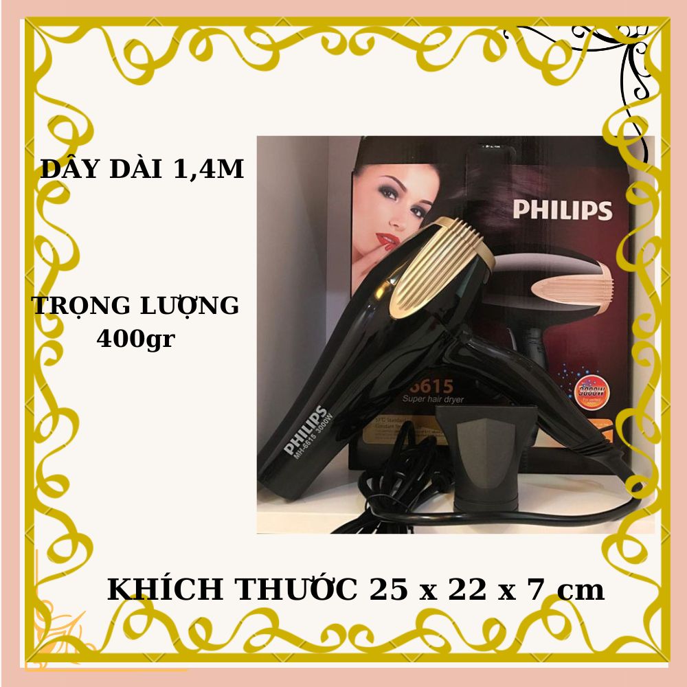 Kích thước | THÔNG TIN SẢN PHẨM+ Công suất 3000w - sử dụng điện áp 220v+ 2 tốc độ gió - 3 chế độ nhiệt (mát, ấm, nóng)+ Kiểu dáng khỏe, chắc chắn - kèm đầu thổi nhiệt+ Màu sắc: Đen, vàng kết hợp+ Kích thước 24 x 24 x 8 cm - móc treo+ Trọng lượng tịnh 450gr - dây dài 1,5m+ Vỏ nhựa cao cấp, sơn phủ 2 lớp+ Sản phẩm gồm; 1 máy sấy tóc Philips 3000w + 1 hộp đựng sang chảnh + 1 đầu thổi nhiệt |