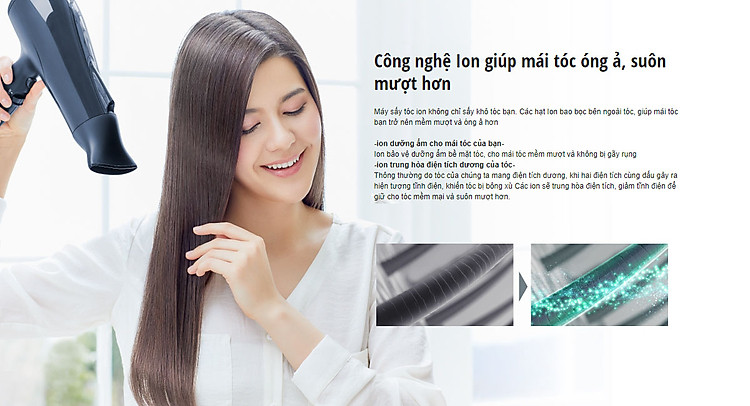 - Điều hòa ion mang lại mái tóc mềm mượt
