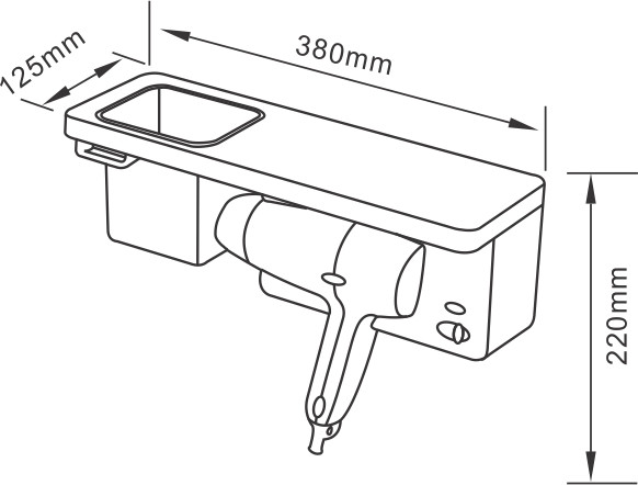 Với sự kết hợp khéo léo, thiết kế góc cạnh tinh xảo, máy sấy tóc kết hợp khay đựng đồ Xinda là một trong những thiết bị mang đến sự hiện đại, sự tinh tế cho các công trình. Sản phẩm không đơn thuần chỉ là máy sấy tóc mà còn tích hợp rất nhiều tính năng trong đó như móc treo bông tắm, khay để đồ trang điểm, nước tùy theo ý thích của người dùng.
