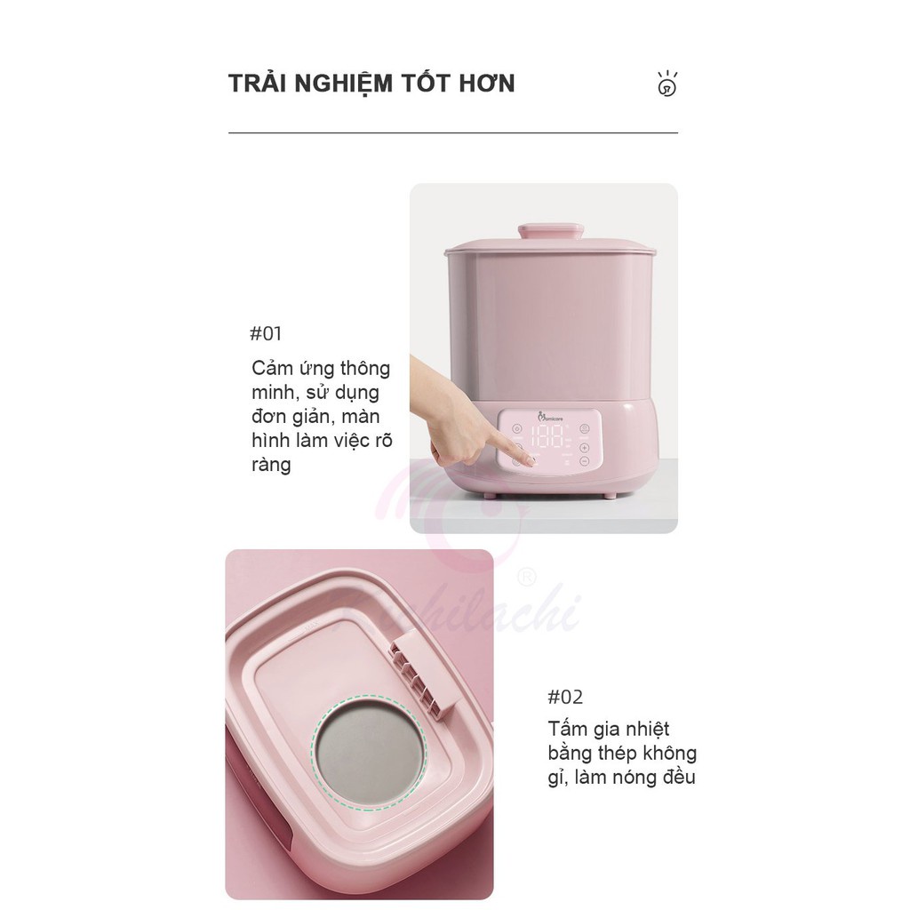 Máy tiệt trùng rửa bình sữa bằng hơi nước và sấy khô 3in1 Mamicare MC2003 vệ sinh bình sữa cho bé 𝑪𝒐̂𝒏𝒈 𝑫𝒖̣𝒏𝒈 𝑵𝒐̂̉𝒊 𝑩𝒂̣̂𝒕 ⍣ Nuôi trẻ vấn đề về vệ sinh an toàn, giúp bé tránh xa các vi khuẩn là điều hết sức cần thiết, tất cả các bình sữa phụ kiện cho bé đều phải được đảm bảo vệ sinh tốt nhất. ⍣ Đa năng: Ngoài 2 chức năng chính là tiệt trùng và sấy khô, máy còn có thêm chức năng chưng cất. ⍣ An toàn: Với công suất làm nóng 600W, công suất sấy khô lên tới 180w, điện áp sử dụng 220V/50Hz, chắc chắn không có vi khuẩn nào có thể bám trụ trên dụng cụ, đồ chơi của bé. ⍣ Hiện đại: Máy có khoang chứa đồ cực rộng, mẹ có thể tiệt trùng, sấy khô tất cả các dụng cụ của bé như bình sữa, núm ti, bát, thìa ăn dặm...cùng một lúc