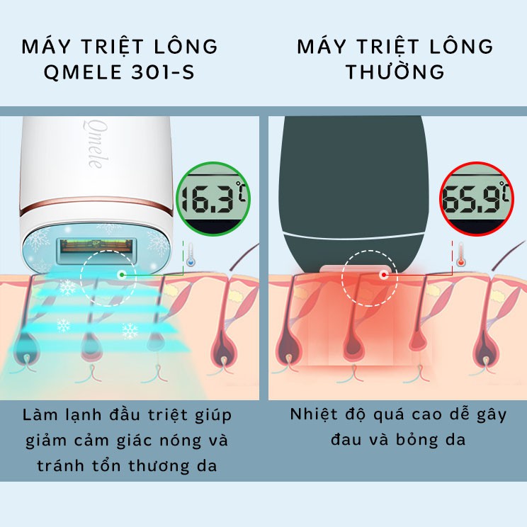 Máy Triệt Lông Lạnh QMELE 301-S là dòng máy triệt lông cao cấp tại nhà đang được các chị em rất ưa thích đấy ạ. Sản phẩm áp dụng công nghệ triệt lông mới nhất, sạch lông vĩnh viễn sau 6-8 lần triệt.