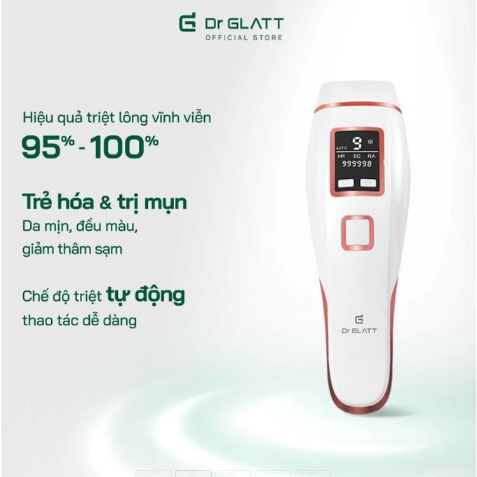 - Hiểu được những trăn trở này, Dr Glatt cho ra đời một sản phẩm được tích hợp công nghệ IPL hiện đại và chế độ làm lạnh Ice Cool giúp việc triệt lông nhẹ nhàng, không gây đau rát và đem lại hiệu quả rõ rệt chỉ sau 8 tuần.