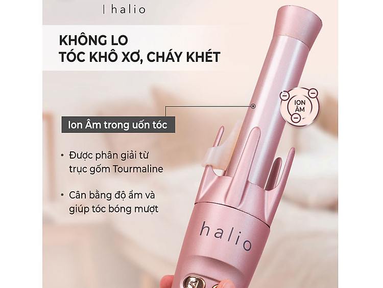 Máy uốn tóc tự xoay ion âm Halio Auto Rotating Hair Curler giúp chị em uốn tóc chuyên nghiệp như tại Salon.