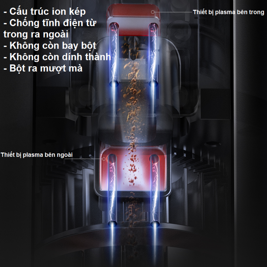 - Tích hợp máy tạo Plasma kép trên máng thoát: Giảm hiện tượng tĩnh điện trong bột cà phê (không bám dính hoặc văng tung)