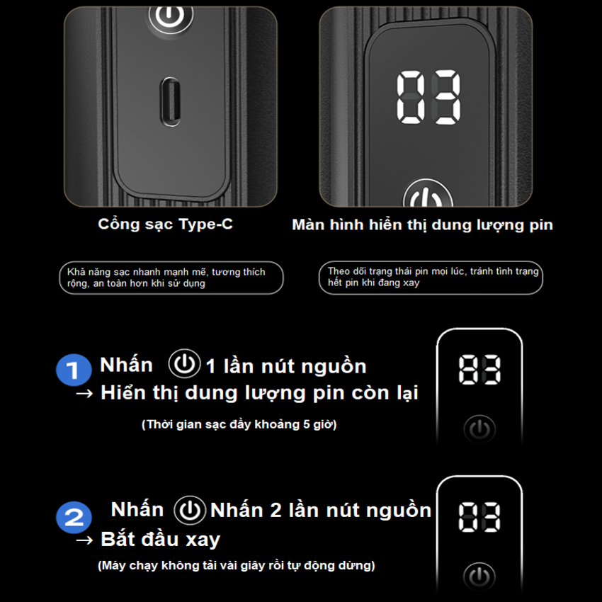 - Động cơ hiệu suất cao, lực xay mạnh mẽ ổn định. Chất liệu đồng nguyên chất và động cơ không chổi than